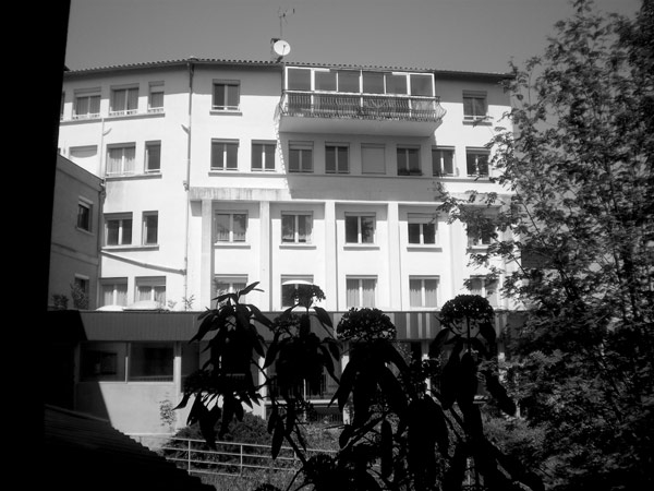 Vue sur le bâtiment des Genêts depuis le jardin intérieur