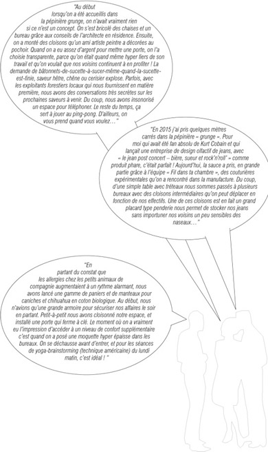 l’entreprise grandit ou se solidifie (pas d’aménagements temporaires : on ne fait pas pour